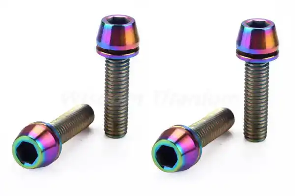 Anodizing transforms the road bike titanium bolt's natural silver-gray appearance into vibrant colors while enhancing surface properties. Type II anodizing grows a controlled oxide layer through electrochemical processing in dilute acid electrolytes. Voltage regulation determines color; 20 volts produces purple, 80 volts yields blue, and intermediate voltages create bronze, green, or pink hues. The resulting oxide layer measures 5-10 microns thick, providing wear resistance while adding negligible weight.